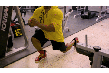箭步蹲是一個發展大腿外形的絕佳動作,可以給你的大腿一個圓潤飽滿的外形,收緊每一絲肌纖維。箭步蹲也是一個發展大腿整體的動作,膕繩肌,臀大肌得到的刺激和股四頭肌一樣多,我們先談談更作用於股四頭肌的箭步蹲。
