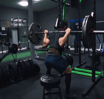 在深蹲架內放置凳子,本來是為了減少腿部的壓力,如此可以在底部觸底反彈,但是前提條件是你能控制住槓鈴重量。