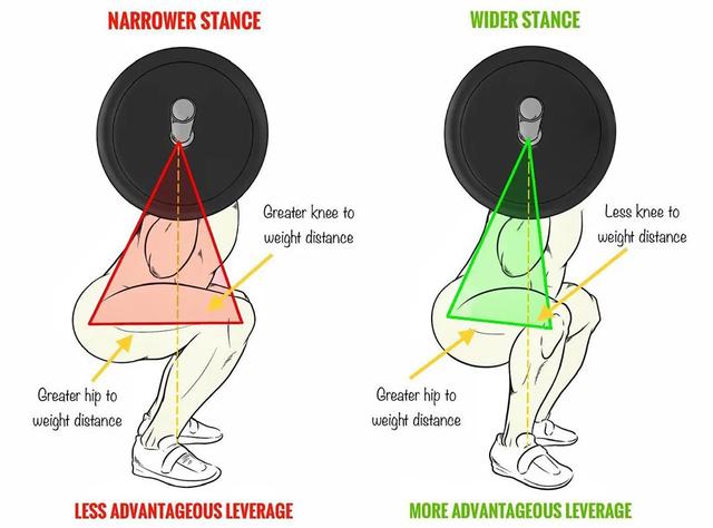 此外,將雙腳間距放寬也是一個非常不錯的選擇。這能夠幫助身材高大的小夥伴,解決膝蓋與槓鈴距離較遠的問題,使整體動作發力、受力都更為順暢自然。
