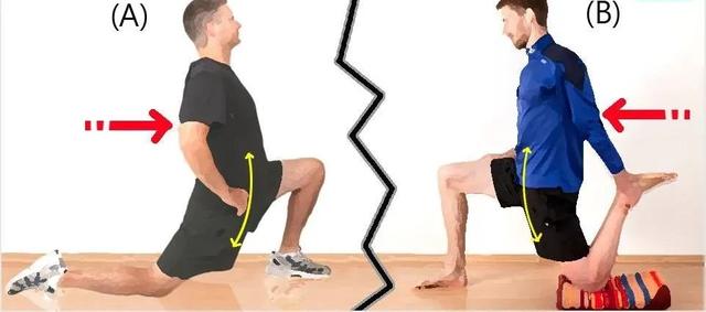 圖(B)小腿屈起,可同時伸展髂腰肌和股四頭肌。
