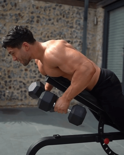 動作六:上斜俯臥啞鈴臂屈伸