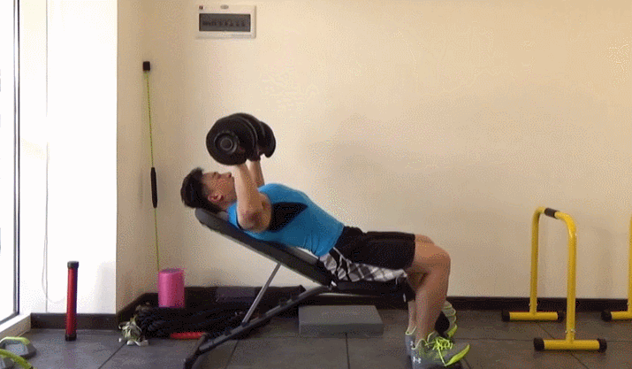 打開你的雙臂,讓你的小臂保持與斜凳垂直的姿勢,像與斜凳垂直的方向推舉啞鈴,將啞鈴推到頂點的位置時停止,然後將動作還原到最初的姿勢,每天堅持做3組,每組15到20次。