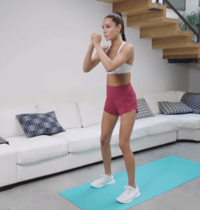 - 保持此動作1秒鍾,然後腿部發力,使身體蹲起,重復此動作,每組做20次,做3組