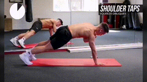 動作一:支撐交替摸肩(10-15次,重復4組)