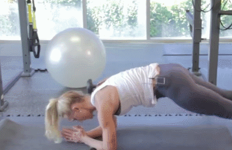 看這個動作的名字,我想多數人都不會很理解這個動作,那麼你可以結合圖片示範去具體的了解一下。我們在做這個動作的時候,還是需要保持一個俯身支撐的姿勢,同樣將我們的背部挺直,還有腹部收緊。保持這個最基礎的俯身支撐姿勢之後,就微微向上抬起我的臀部,然後來完成這個腿部的彎曲動作。
