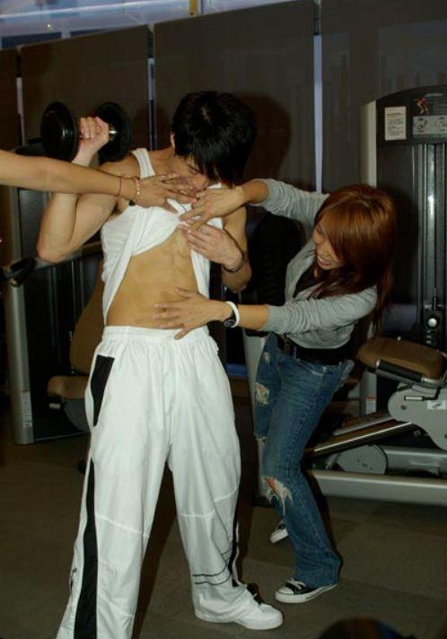 光良害羞的撩起了衣服