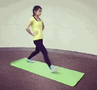 - 雙腿交替向前邁,保持每次步幅大小相同,後側腿膝蓋不要著地
