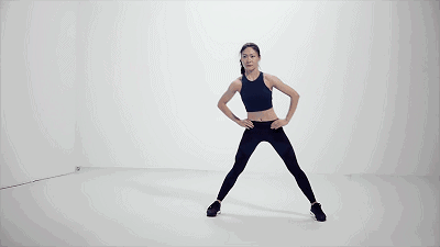 這個動作主要是針對我們大腿內側肌肉的拉伸。動作完成的要領是首先雙腿分開大約1米的距離,通過向左向右轉移身體重心,感受大腿內側的肉肉被拉伸的感覺。