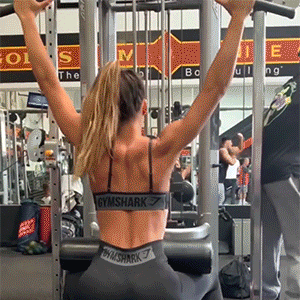 這個動作能夠很好地鍛鍊到背闊肌三角肌後束,能夠起到讓背部輪廓更加有型。首先坐於高位下拉器雙腳打開比肩略寬,雙腳踩實地面腳尖先前,大小腿夾角90度,屈膝屈髖坐於器械上。骨盆略微前傾,背部挺直脊柱呈自然生理曲度,挺胸抬頭眼睛目視前方,雙臂外展雙手全握閉握橫把,拳眼相對。在做的過程中肩屈肘屈做內收動作,向下拉橫槓,拉至腦後部,稍作停留感受背部肌群的緊縮感,然後緩慢向上,做的過程中不要用力過猛,容易擊打腦後部。每組10~12次共4組。