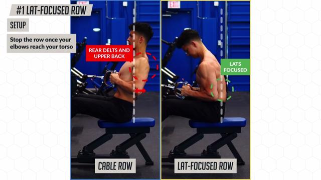 此外相較於「手肘移動至身體後方」,此時確保它們與身體齊平即可結束動作。那主要是因為進一步後移,背闊肌的受力會越來越弱;上背部、後三角肌會主導發力。