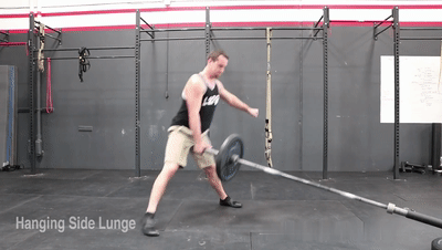 2.與槓杆同側的腳向後腿一步並弓步下蹲,全程保持挺胸,脊柱處於中立。