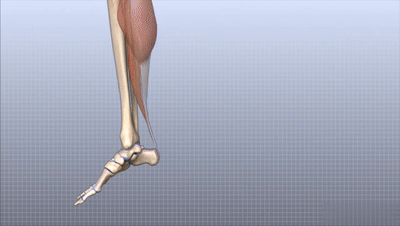 腓腸肌和比目魚肌通過跟腱與跟骨相連,是負責踝關節的跖屈(以踝關節軸,向下轉動腳掌)。