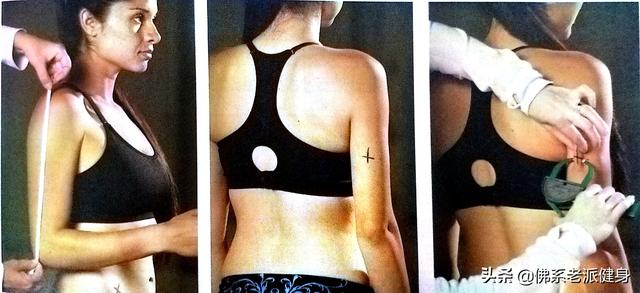 肱三頭肌:在肩峰和鷹嘴突之間的中間取上臂後正中線上的垂直褶皺(如下圖)